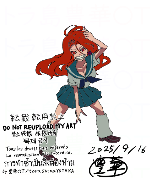 スカートのチェックの描き方に迷ってたら時間切れ