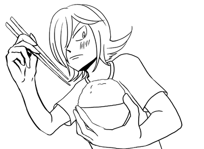 お茶碗もつ手とお箸握る手描くのが苦手