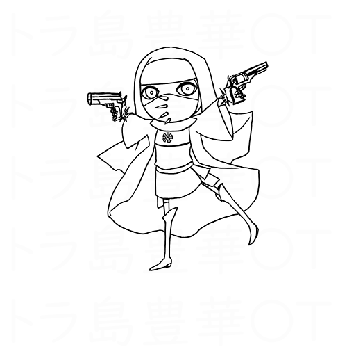 ①まずマスクの棘4本から描く